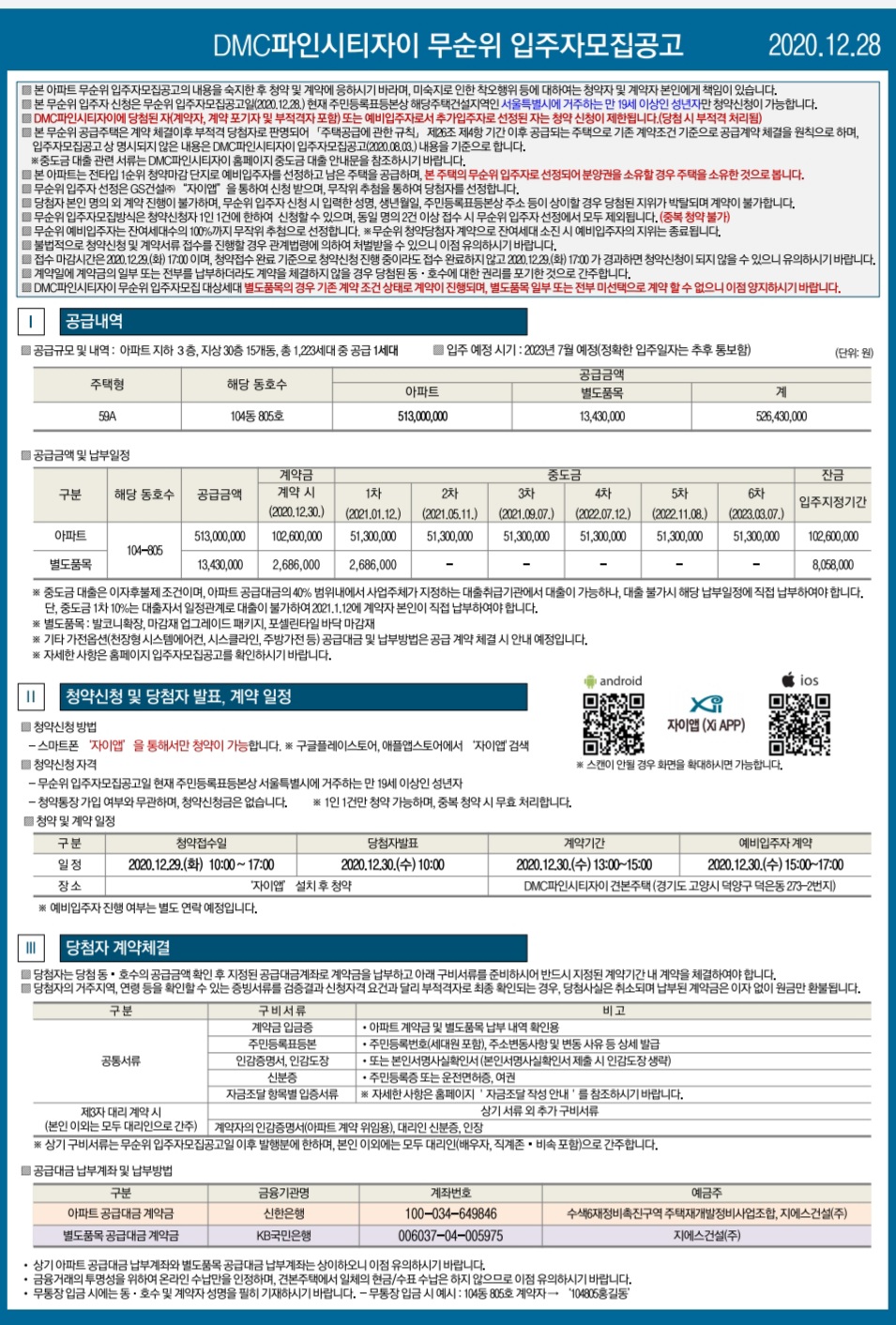 2020년 12월29일(화) 접수예정인 수색6구역 DMC파인시티자이 무순위 줍줍 정보 정리해 봅니다.